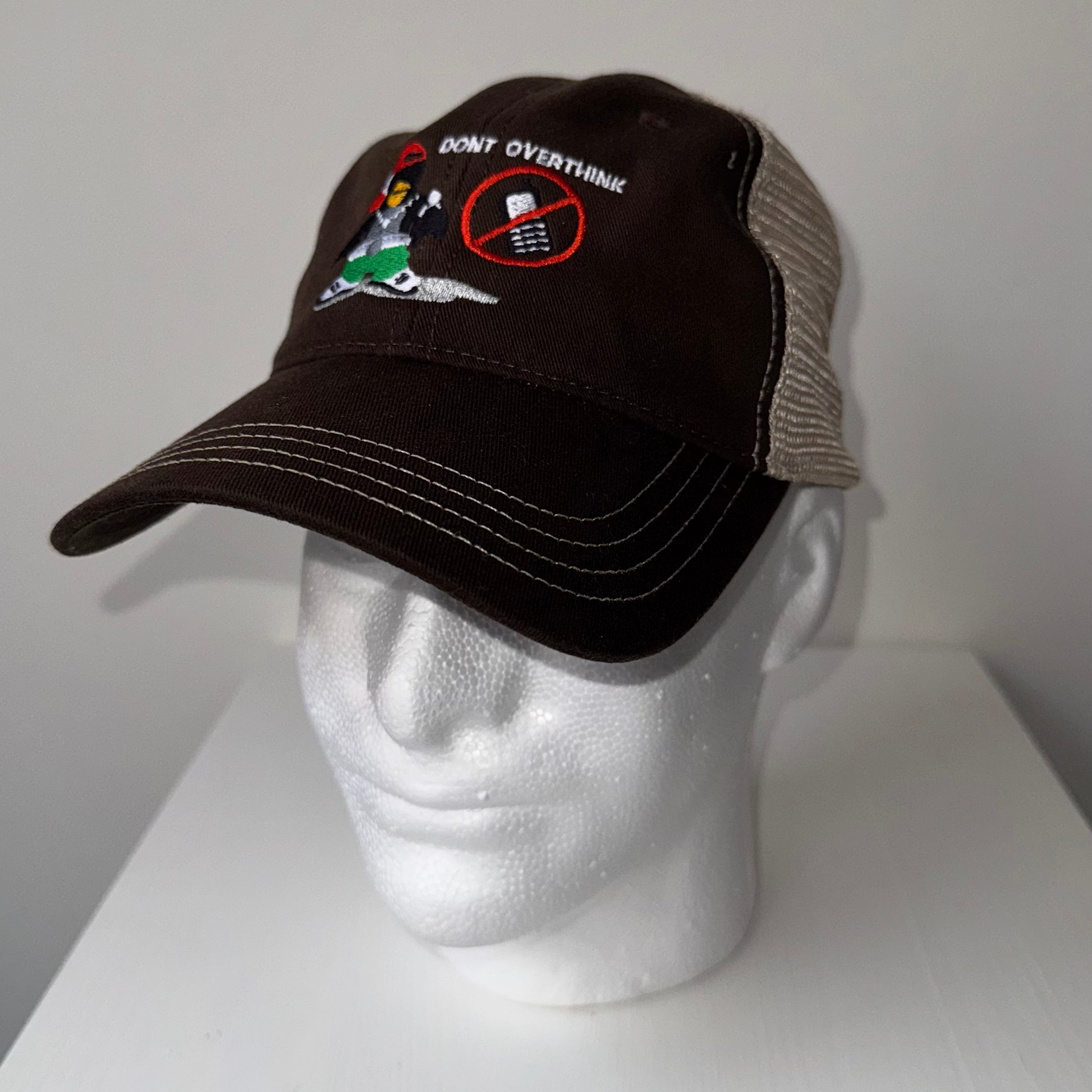 Lampshade penguin logo embroidered on a nice brown trucker cap. Don't over think it.